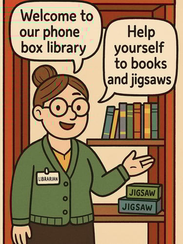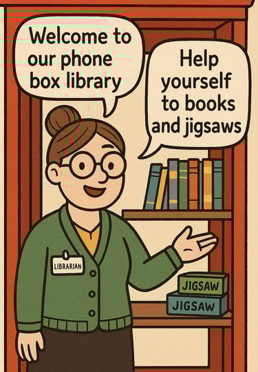 Telephone box libraries are regularly maintained and free to use. Books and Jigsaws are available to use and return